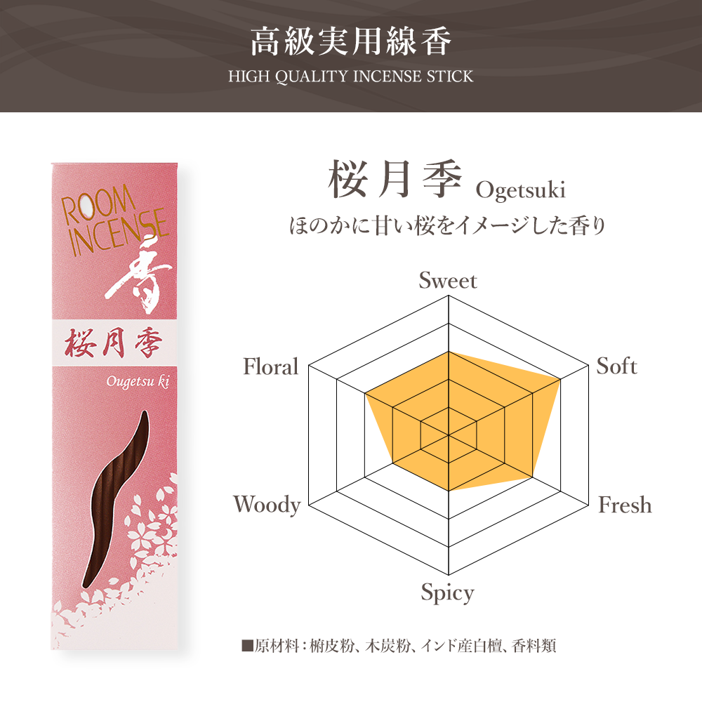 原材料:椨皮粉、木炭粉、インド産白檀、香料類