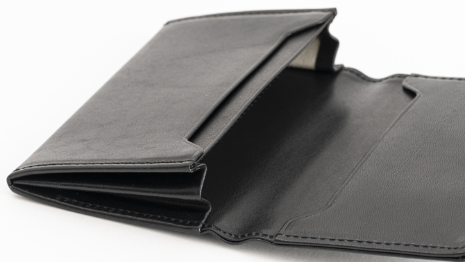 The thickness of the body is thinly finished so that it fits easily in a suit pocket, and the slim design does not affect the front of the case, making it smart for exchanging business cards.